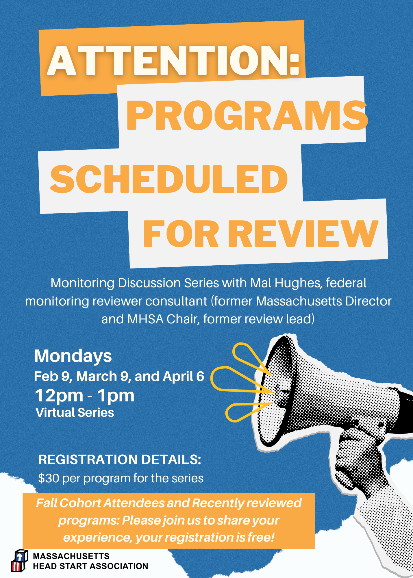 Monitoring Discussion Series with Mal Hughes, federal monitoring reviewer consultant (former Massachusetts Director and MHSA Chair, former review lead)
